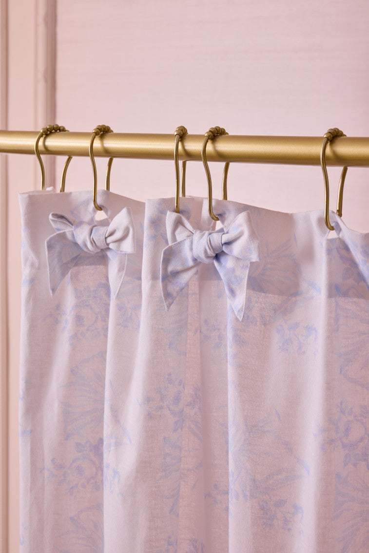 Bring a vintage-inspired charm to your bathroom with our Shower Curtains. These linen shower curtains dress up your space with our signature bow print and top-applied bows for a touch of love. The curtain includes shower hook holes. Does not include a liner.