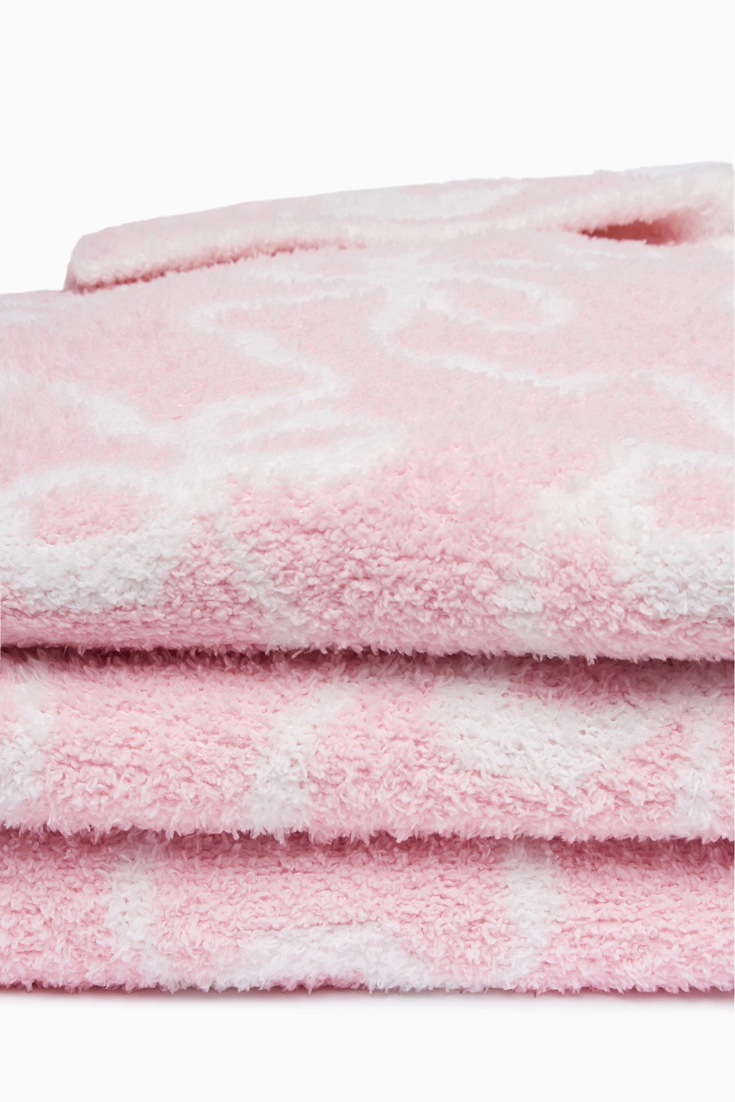 Cozy dreams come true with our new Teddy Bow Blanket. Arriving in a new teddy quality, these plush blankets are our coziest yet with an extra warm, ultra-soft feel to the touch. The blanket is printed with our signature winding bow print all over.