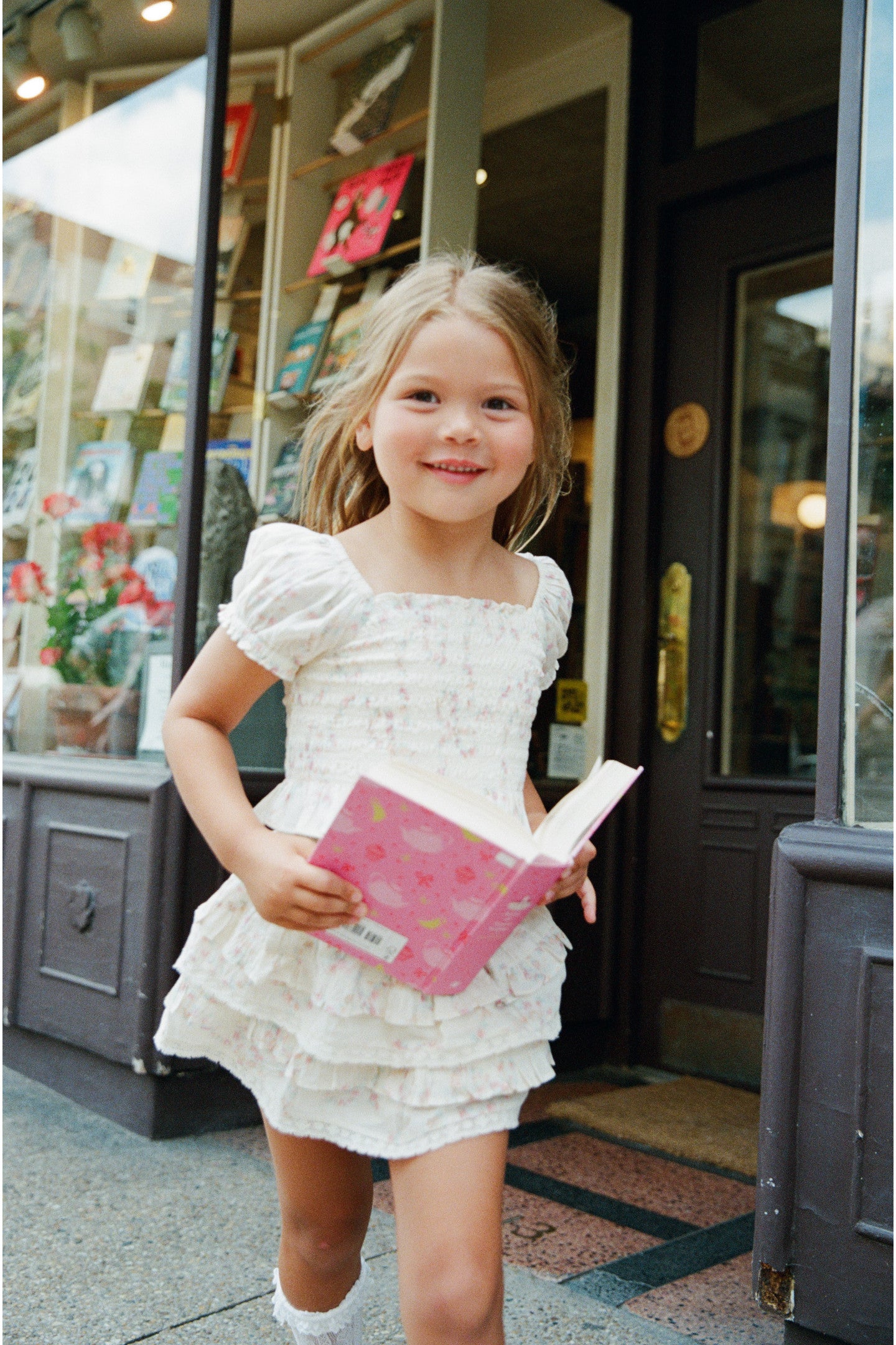 Our beloved Billie Skirt returns. Designed from a cotton voile, the piece arrives with our signature bow fleur print reimagined into tiny ditsy florals printed all over. Below a wide smocked waistband, the skirt falls to two shirred tiers with ruffle details.