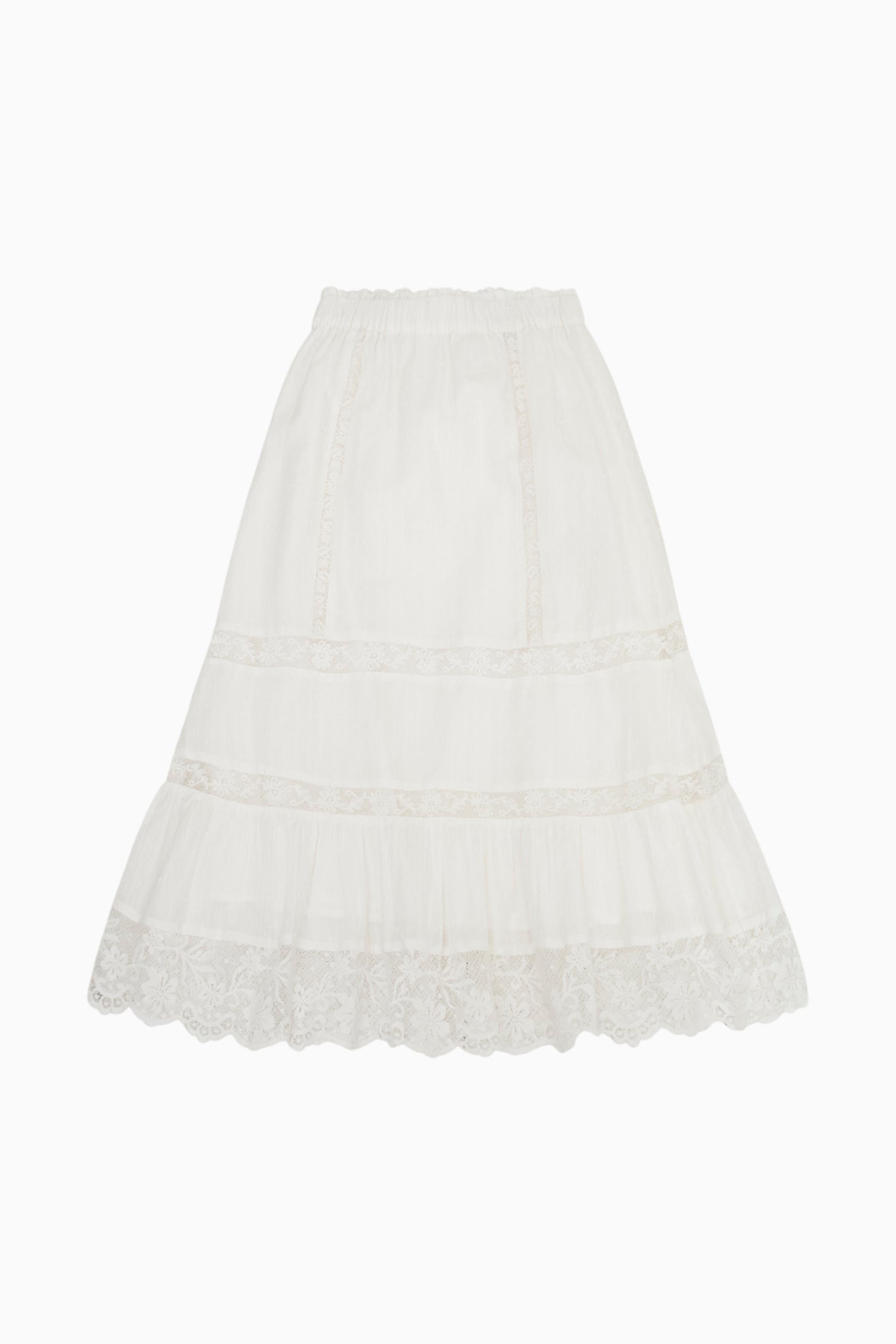 The Donella Skirt is always in style. This stunning, Victorian-inspired piece features elastication at the waistband for ease and comfort and lace trims throughout.