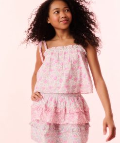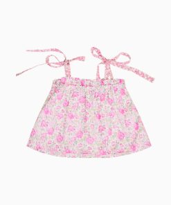 Introducing our latest capsule collection Made with Liberty Fabrics designed into our favorite elevated pieces.The Fiorella Top returns in Liberty’s Tana Lawn™ cotton fabric with a floral print all over. This pretty sunshine piece features thin straps with a bow detail, an eyelet neckline, a large bow embroidery, and a scalloped hem with eyelet detail.