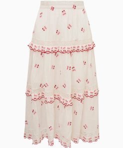 Introducing the Zinna Skirt as part of our America’s Sweetheart Cotton Collection. This sweet multi-tiered skirt debuts with printed cherries, scallop details, and an elasticated waistband for easy and comfortable wear.