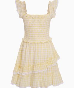 LoveShackFancy Women’s Aline Gingham Eyelet Mini Dress | Honeycomb