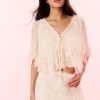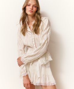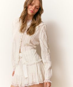 Feminine and sophisticated in the Aralina Blouse. Designed from a luxe, silk habotai fabric, this chic, Victorian-inspired top features a high collared neck, long blouson sleeves with snap closures, and a lace yoke with self-covered buttons at the front with snap closures.