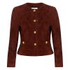 Feeling flirty and cozy in the Carol Cardigan. This dream knit debuts with stunning hand-dyed ribbons all over that have been hand-knit into a beautiful eyelash boucle yarn. The ribbons weave in and out of the fabric to create a playful, fringe effect. This must-have sweater is finished with our custom LoveShackFancy faux shell button with a bow motif.