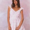 as part of our Upcycled Icons Collection, a limited-edition, sustainable capsule featuring our best-selling silhouettes made from remnant LoveShackFancy fabrics. Warm weather perfection, this flirty mini dress has a flattering silhouette with lace insets and pintucking details. The dress features a smocked back, spaghetti straps, and an airy skirt finished with lace.