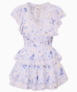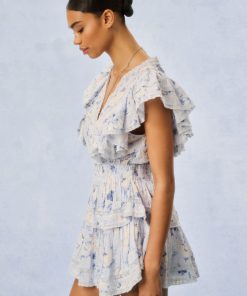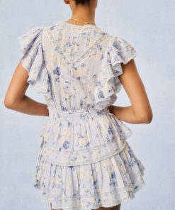 Our best-selling Gwen Dress returns as part of our Fragrance Capsule Collection, this time arriving in our best-selling perfume prints on an airy cotton with lace embroidery details. This short frock has a faux wrap top, which forms a deep v-neckline, shirred ruffles line the outer edges of the shoulder and bodice forming flutter sleeves. The skirt is constructed just like our signature Ruffle Mini – with an elastic waist and two shirred flounce tiers.
