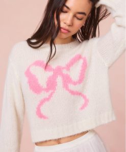 Cozy and chic in the Jorah Pullover. Because everything’s better with a bow, this charming off-gauge knit is designed from a warm, alpaca blend featuring a large bow on the front. Pair with a Ruffle Mini Skirt or your favorite vintage denim.