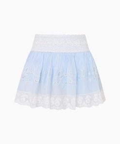 Loving on the Levant Skirt. This airy skirt arrives in an ultra-thin, lightweight cotton voile fabric that’s crisp, but delicate for the high summer season. With a fixed waist, the waist yoke features an arrangement of stacked laces and shirring. The hem stuns with dancing floral embroideries. Pair with the Pruitt Top for a full set.