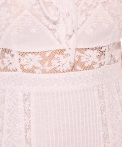 Designed for sunshine, the Maera Dress arrives with a stretchy, ultra-light cotton voile fabric with a zig zag wide vintage-inspired laces all over and delicate threaded ribbon trims. The pretty mini begins with adjustable spaghetti straps that fall to a slim bodice and waist above an airy, flirty skirt. The piece is finished with smocking at the back and a zipper is included.