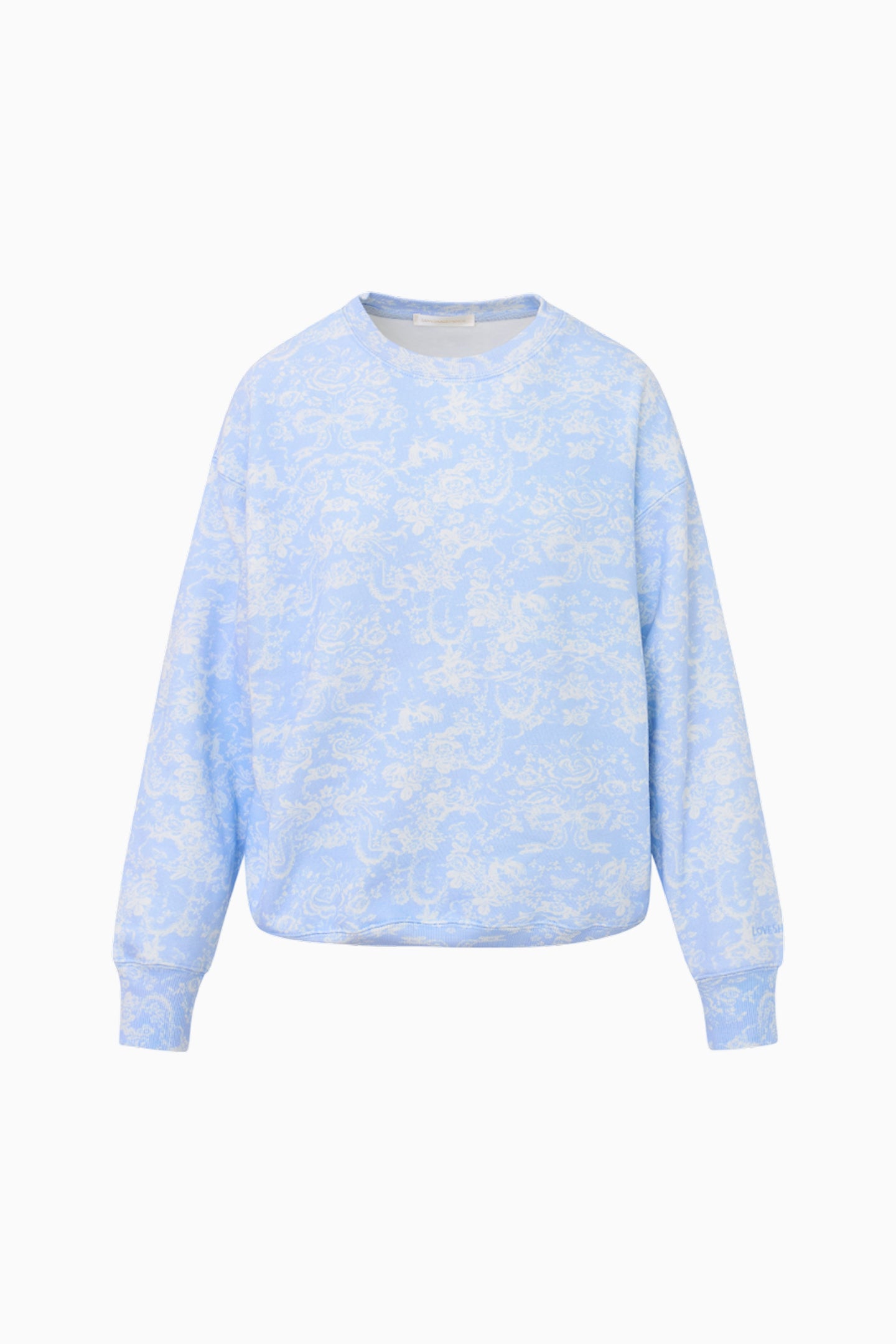 Our best-selling Palo Pullover is back with our signature toile print all over and LoveShackFancy embroidered at the sleeve hem. Extra cozy and cute, this soft piece is designed from a warm fleece fabric for the cold weather season. Throw over a Ruffle Mini Skirt or your favorite vintage jeans for a laid-back look. Pair with the Lillia Sweatpant for a full set.