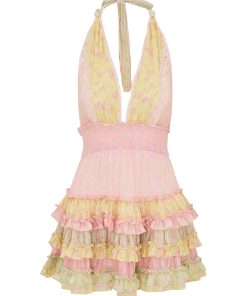 The Quintelle Dress returns with a mixed print, color blocking medley on a lightweight cotton voile.. A revamped version of our best-selling Deanna Dress, the flirty Quintelle is a Victorian-inspired mini perfect for your next party. With an elasticated waist, this dress is easy to pull on and wear. The playful skirt features textured micro pleats and tiny ruffles all over.