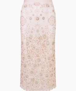 Dressed to impress in the Reeve Skirt. This stunning event midi is designed with a structured, cotton organdy fabric embellished with beautiful, artisanal rhinestones, beading, and floral eyelet details. With a pencil silhouette, the skirt has a flattering fit, a mini-length lining, and includes a side seam zipper. Pair with the Emeryn Top for a full set.