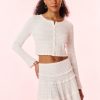 Level up your look with the Rheisa Jacket. This 80s-inspired moto jacket is designed from 100% lamb leather. The piece begins with a biker collar and princess zip up seam around the collar with delicate ruffles to give it our signature feminine touch. The ruffles flow to the back and travel up the back of the sleeves and around the jacket. With a modern look and feel, this piece is finished with two zipper pockets with leather zipper pulls.