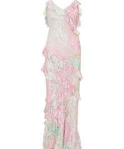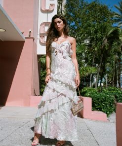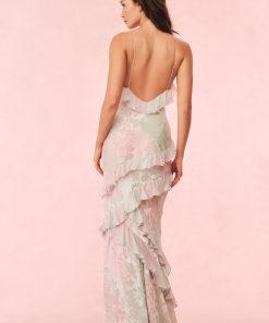 Our best-selling Rialto Dress returns with our beloved burnout viscose drapey fabric for the spring with bright, vibrant colors. This must-have party maxi stuns with overlapping, asymmetrical ruffles at the neckline that continue to descend through the entire skirt. Slightly fitted, this dress features a sexy silhouette.