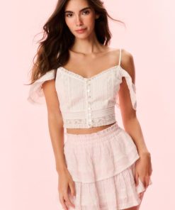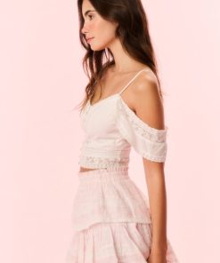 LoveShackFancy Women’s Ruffle Mini Gingham Eyelet Skirt | Angel Pink