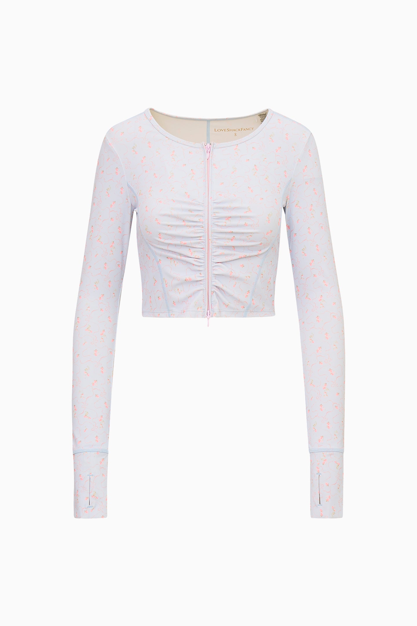 Our best-selling Sindri Jacket is back. Designed for the girls on the go, this active layer is lightweight and ideal for cool days outside. The jacket features our ditsy floral print, a ruched center for a flattering fit, a center-front zipper, a slightly cropped hem and long sleeves. Pair with the Dierdra Bra, Livetta Skirt, or Santiana Legging for the full set.