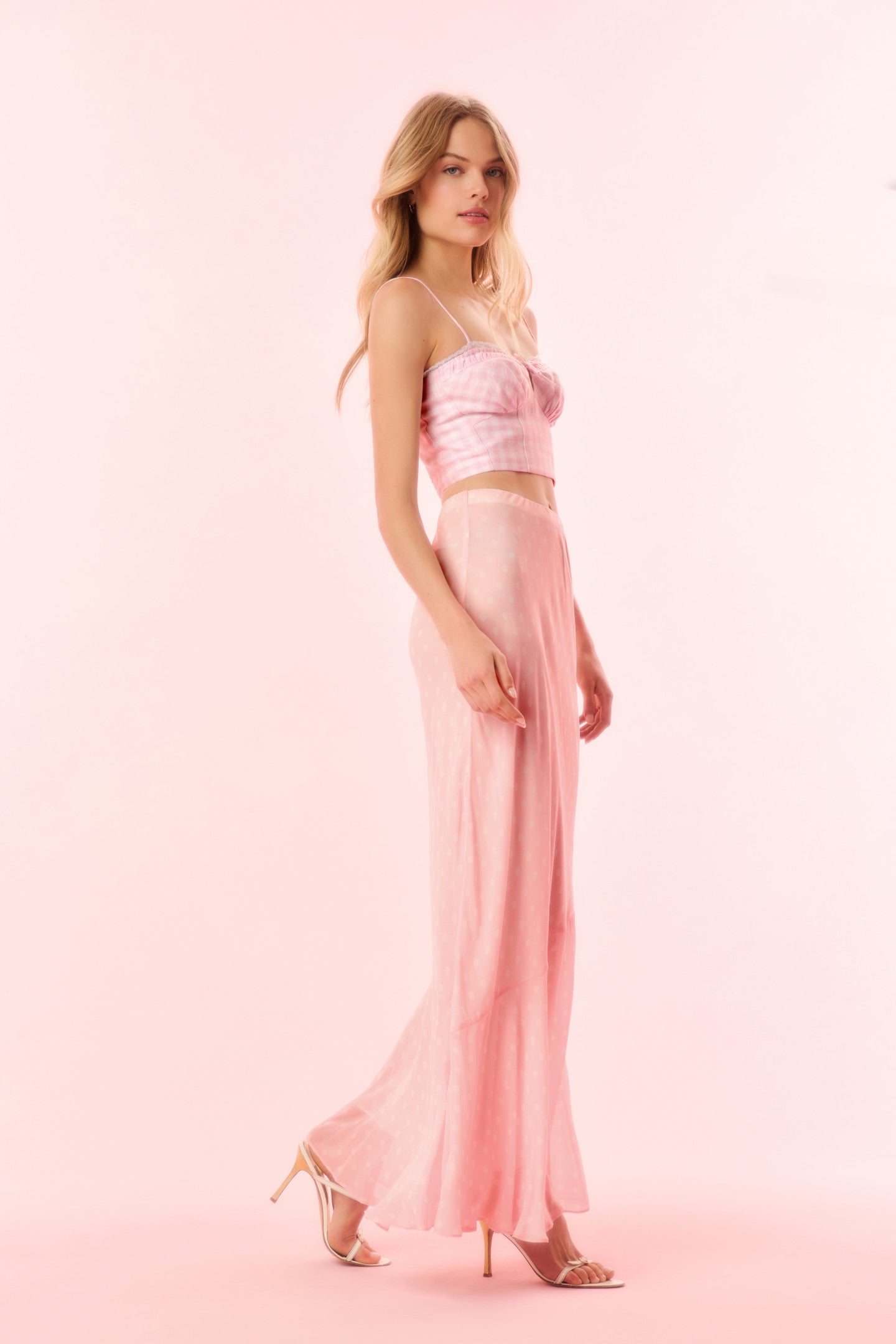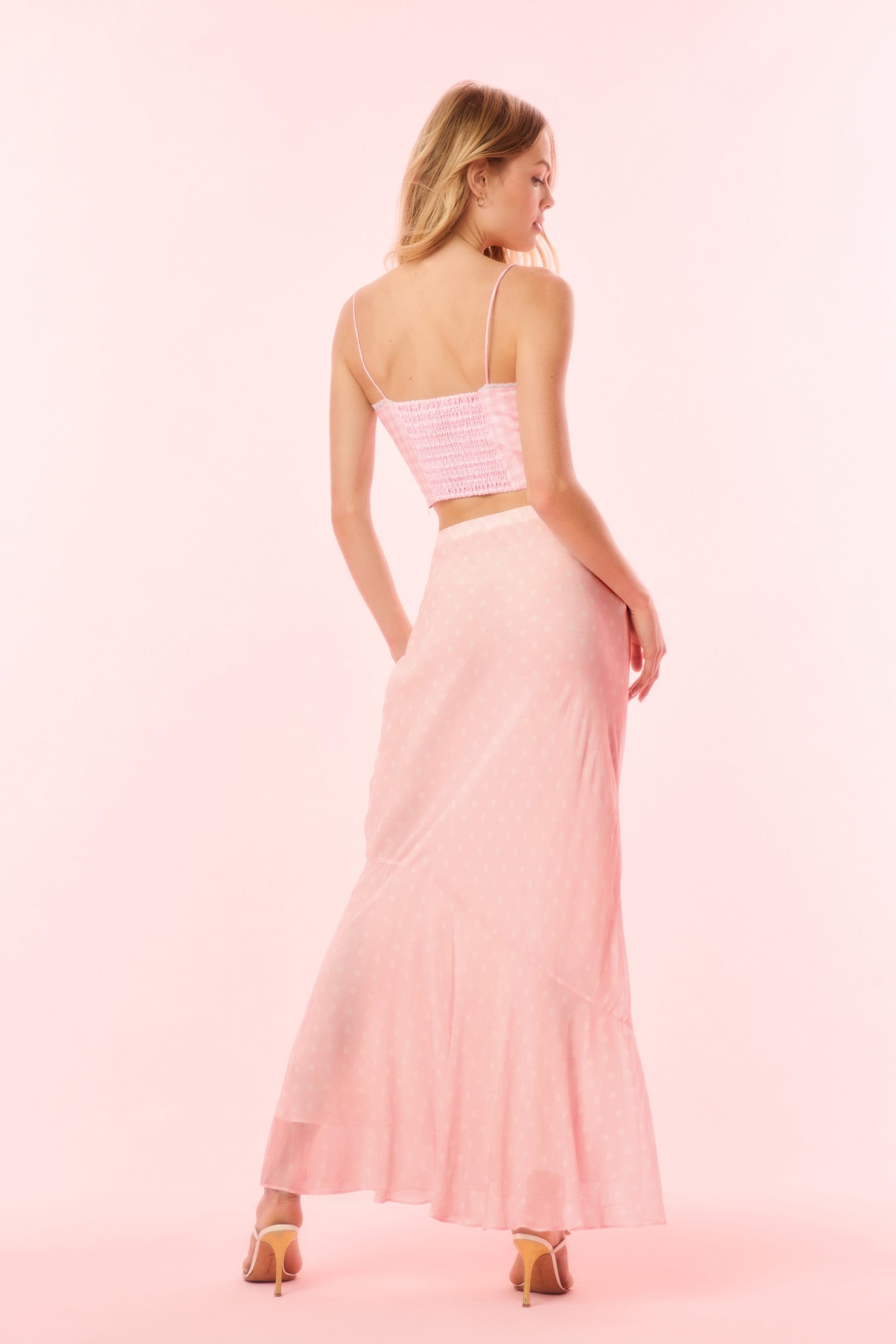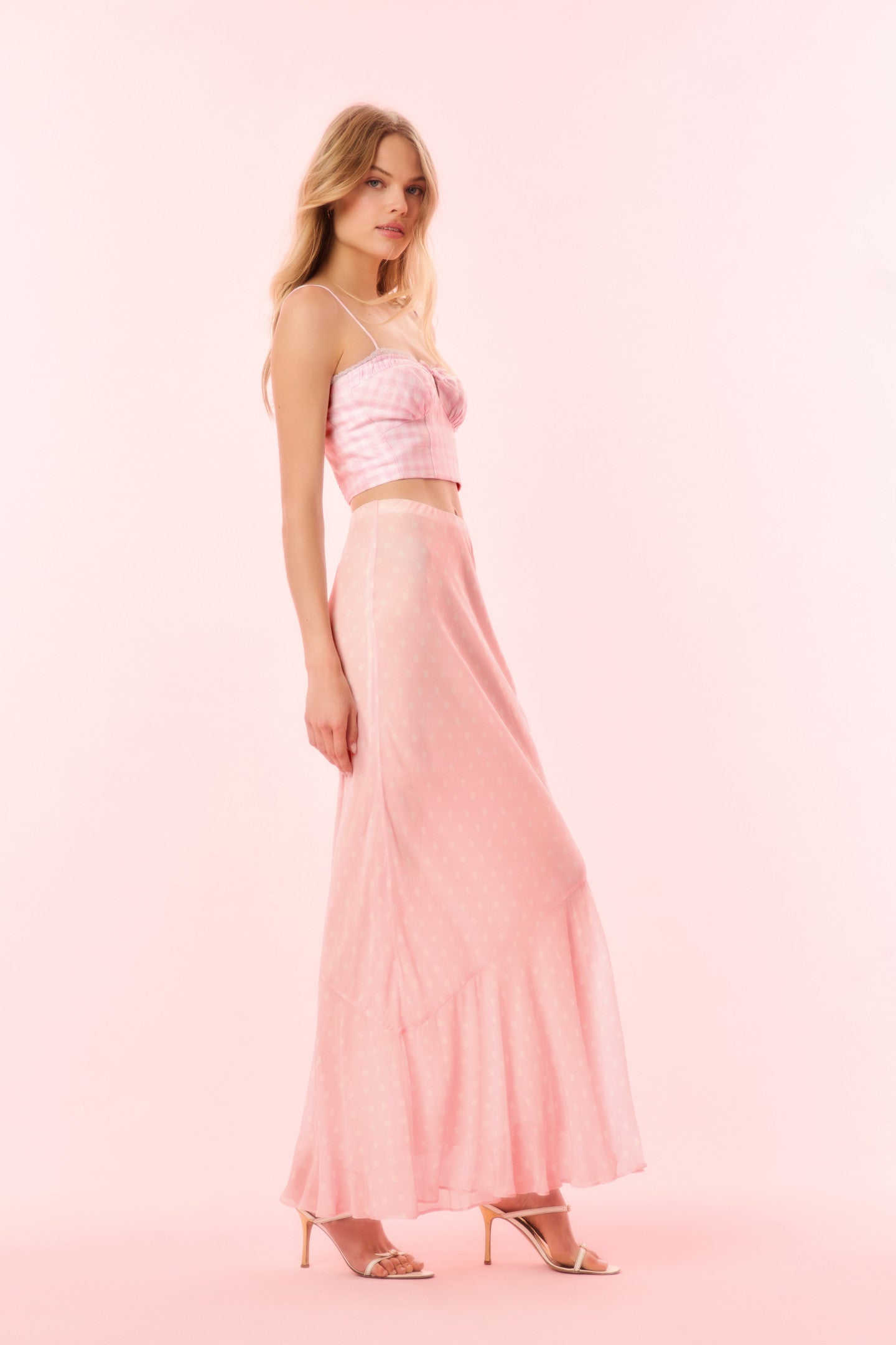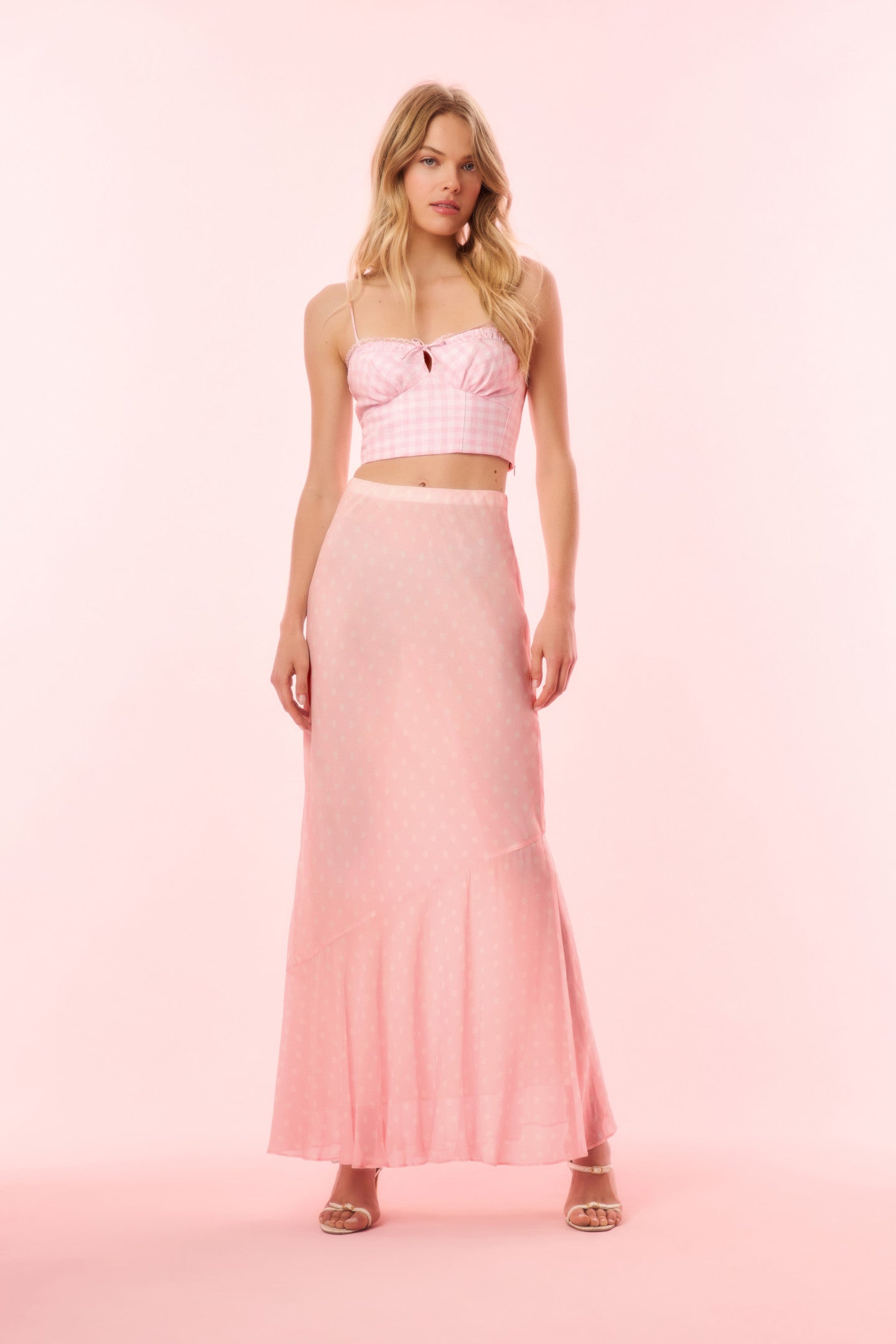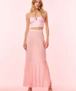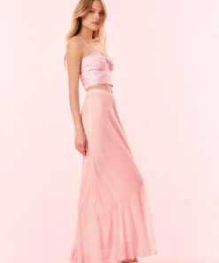 LoveShackFancy Women’s Tesleigh Chiffon Polkadot Maxi Skirt | Shell Pink