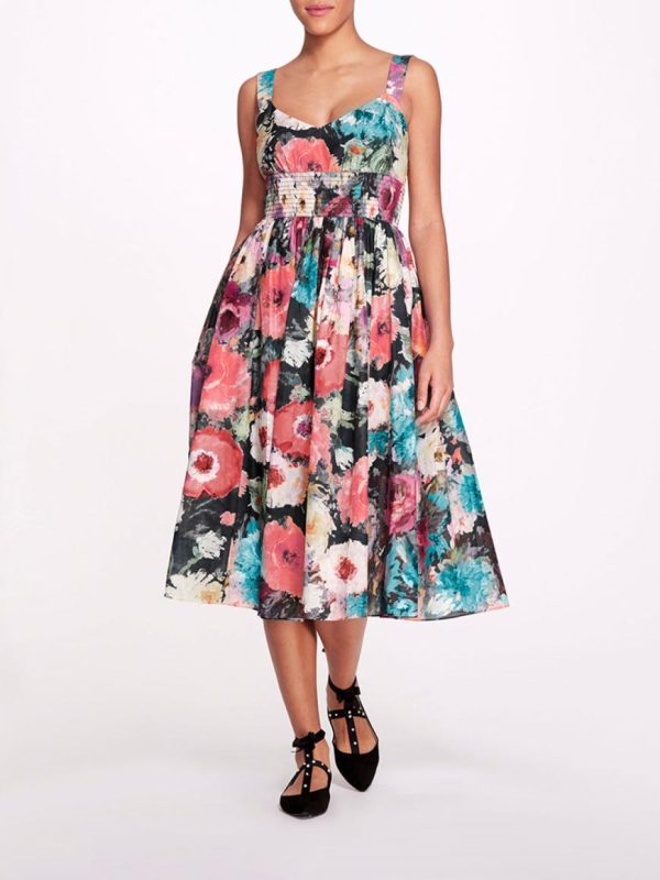 An abundance of illustrative flowers and printed silk cotton smocked come together to create the Betony dress. Betony is an elevated waist dress with a soft v-neckline and a-line silhouette.