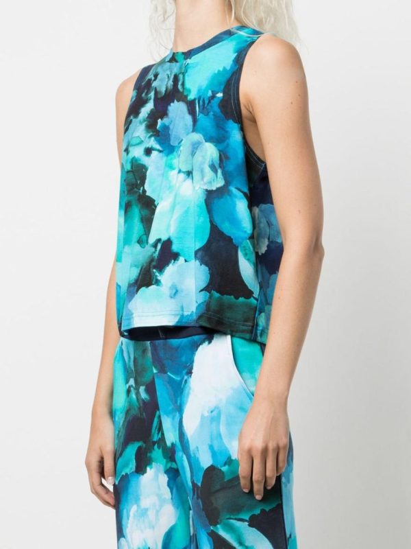 The Casey Top Printed features a floral print, sleeveless design, round neck and a keyhole back. The Casey is made of a navy multi, super soft fleece jersey fabric for a comfortable and flattering fit.