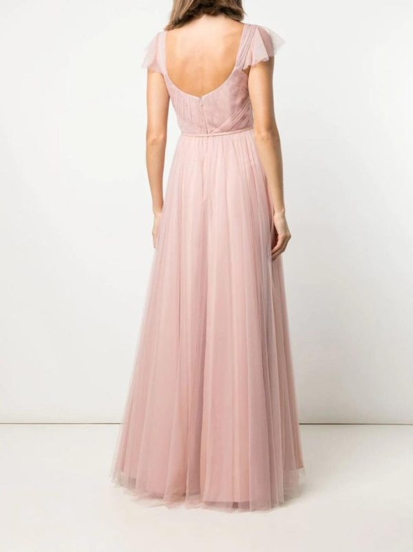 Women Blush Pink Tulle Short Sheer Sleeves Gown | Marchesa Pink Gowns