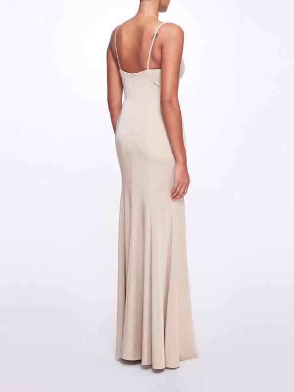 Women Champagne Deep V-Neck Fitted Gown | Marchesa Marchesa Notte