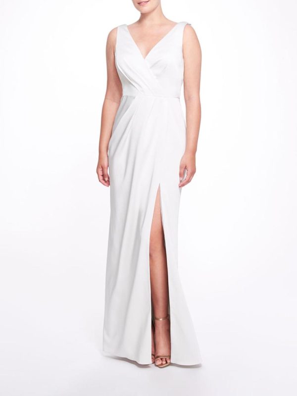 The Turin gown in dove gray was thoughtfully designed. Featuring a stunning draped silhouette, an appealing leg slit, and a beautiful cowl back detail, this dress is simple and stunning.
