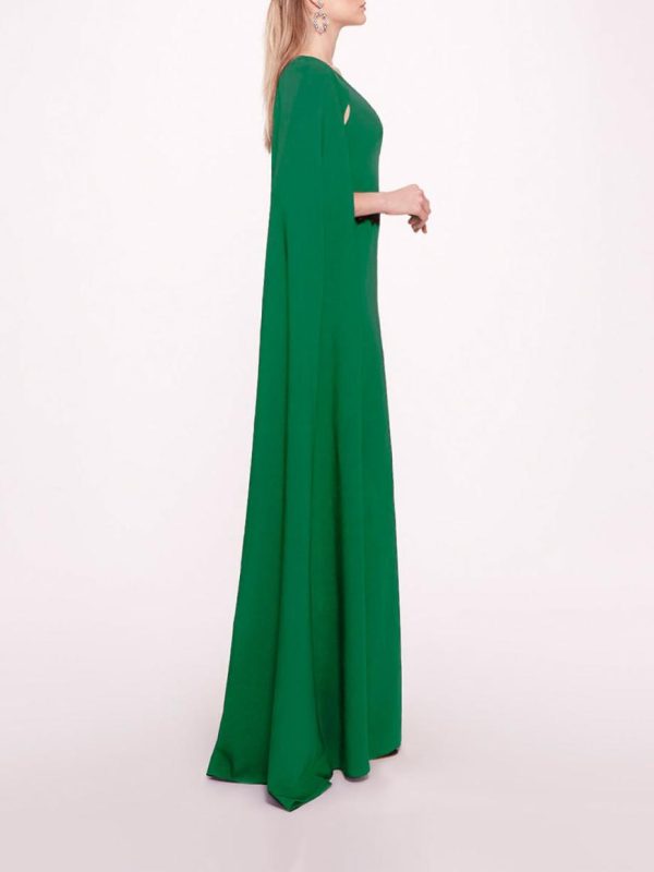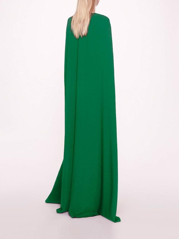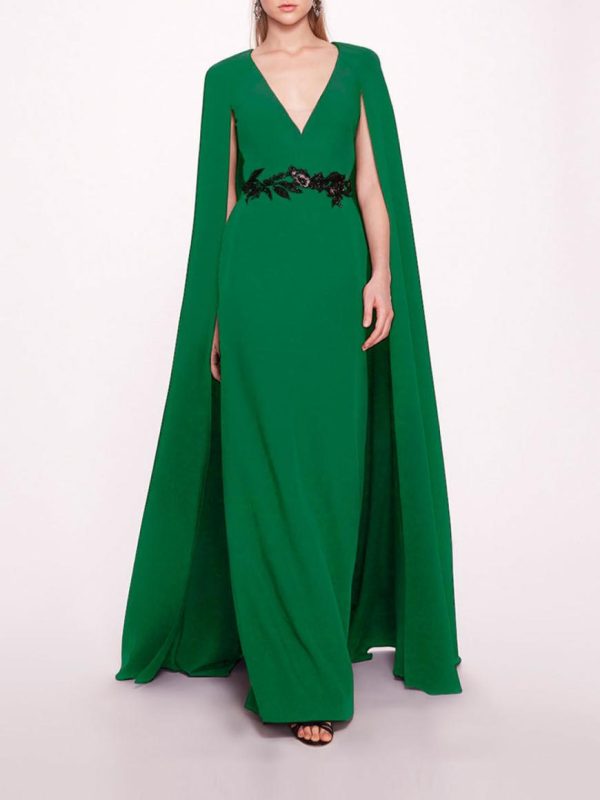 The Embroidered Belt Kaftan is a floor length cape gown with a deep v-neckline and embroidery detailing on the waist.