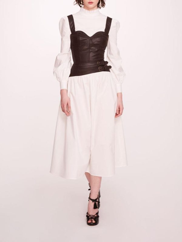 Women Faux Leather Poplin Corset Dress | Marchesa Midi Dresses