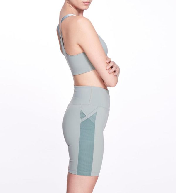 The Olivia Bra features a deep u-neck neckline and racer back. This sports top in the color “Sage” can be worn alone or with the “Sage” Olivia Shorts as part of a chic matching set.