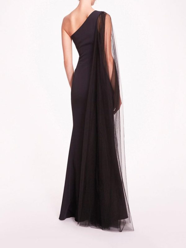 Women One Shoulder Cape Gown | Marchesa Gowns