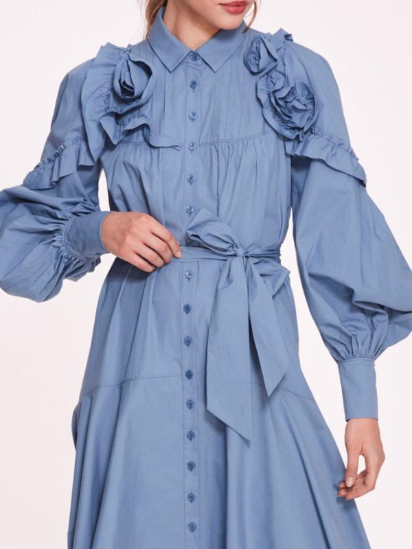 Women Rosette Ruffle Midi Dress | Marchesa Midi Dresses
