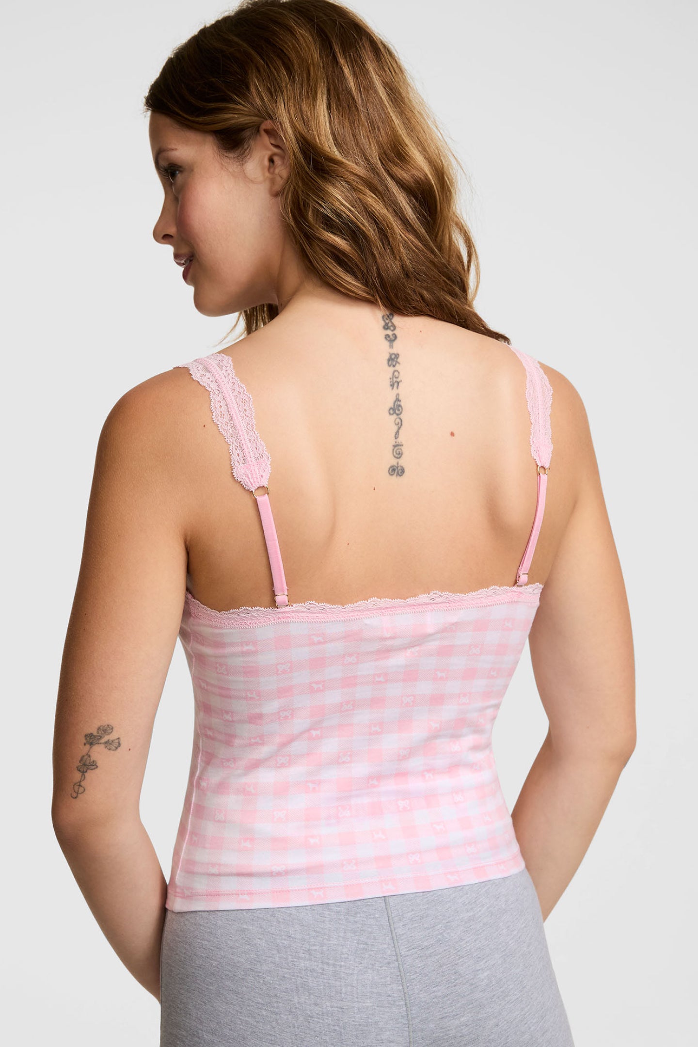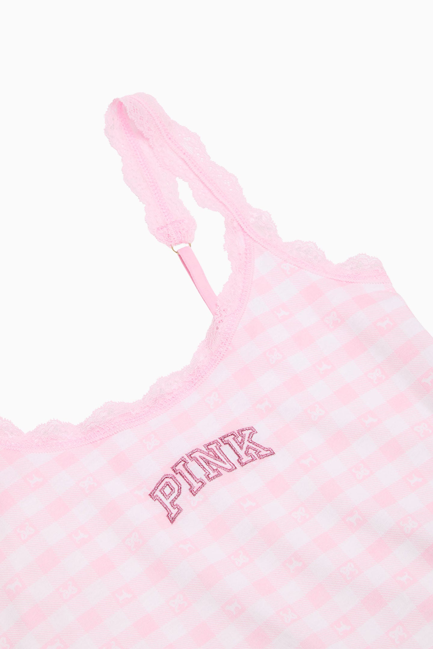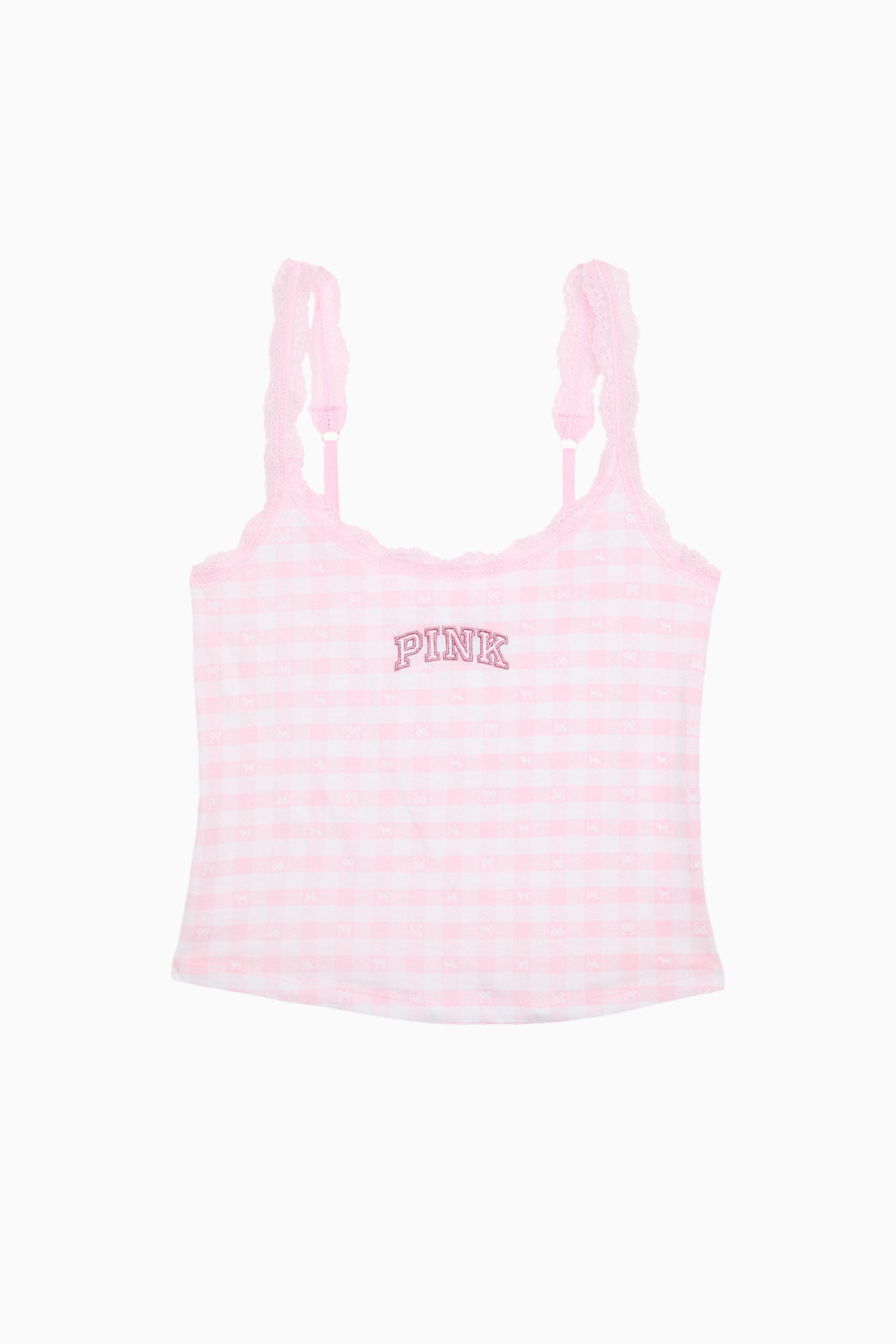 Introducing the Cotton Cami from the exclusive, limited-edition PINK x LoveShackFancy collaboration. Nope, not a dream. Just the cutest Cami you’ve ever seen. We updated your fave supersoft cotton basic, so now you’ve got two more options to add into your rotation, featuring super-sweet PINK x LoveShackFancy deets. Pair with the PINK x LoveShackFancy Cotton Foldover Leggings (because the more bows the better, tbh).