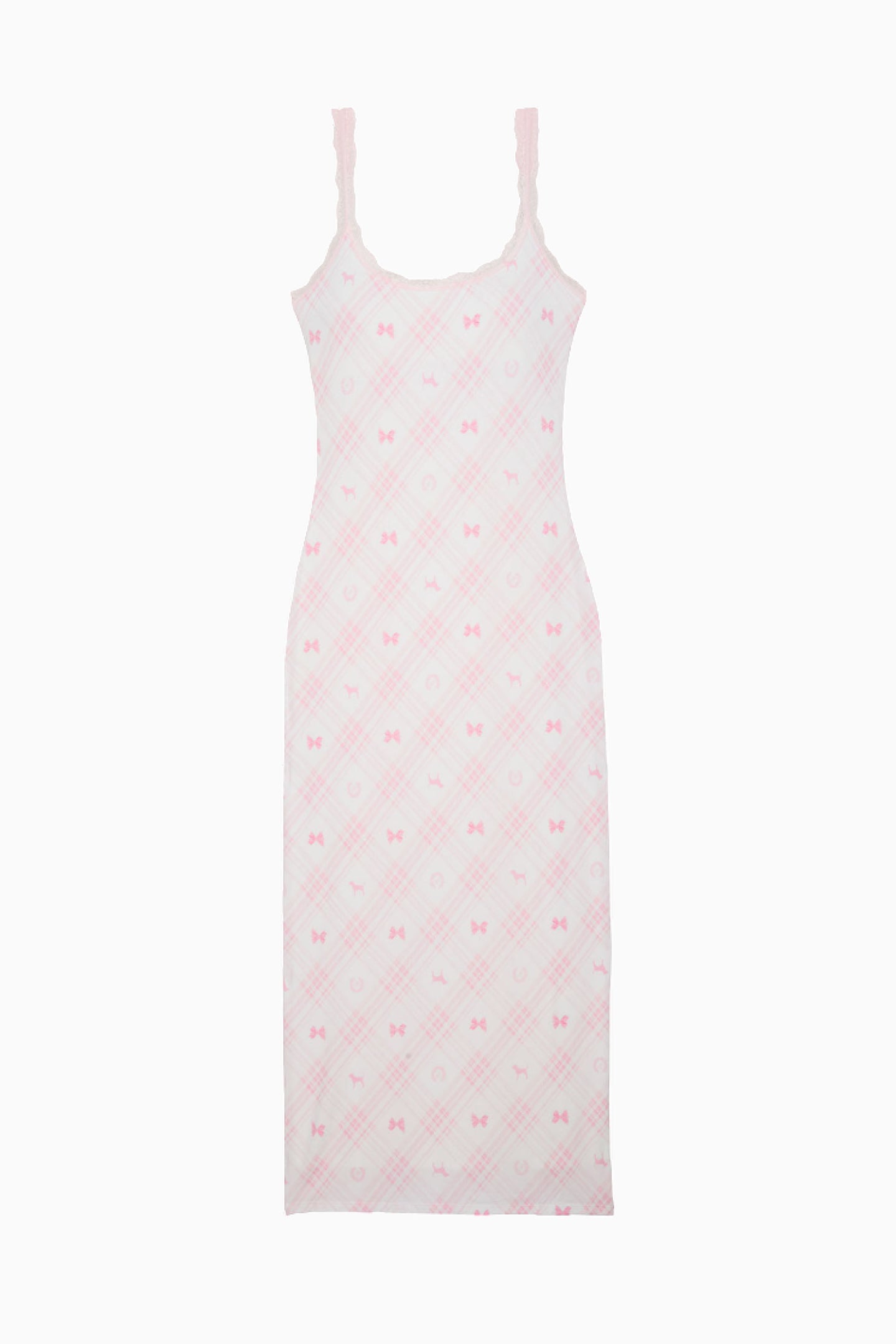 Introducing the Modal Midi Dress from the exclusive, limited-edition PINK x LoveShackFancy collaboration. Soft and stretchy modal hugs your curves, while a cute, printed pattern (bows, iconic PINK finishes, and a preppy tartan print) add a little je ne sais quoi to this star silhouette. She’s your new fave basic, basically.